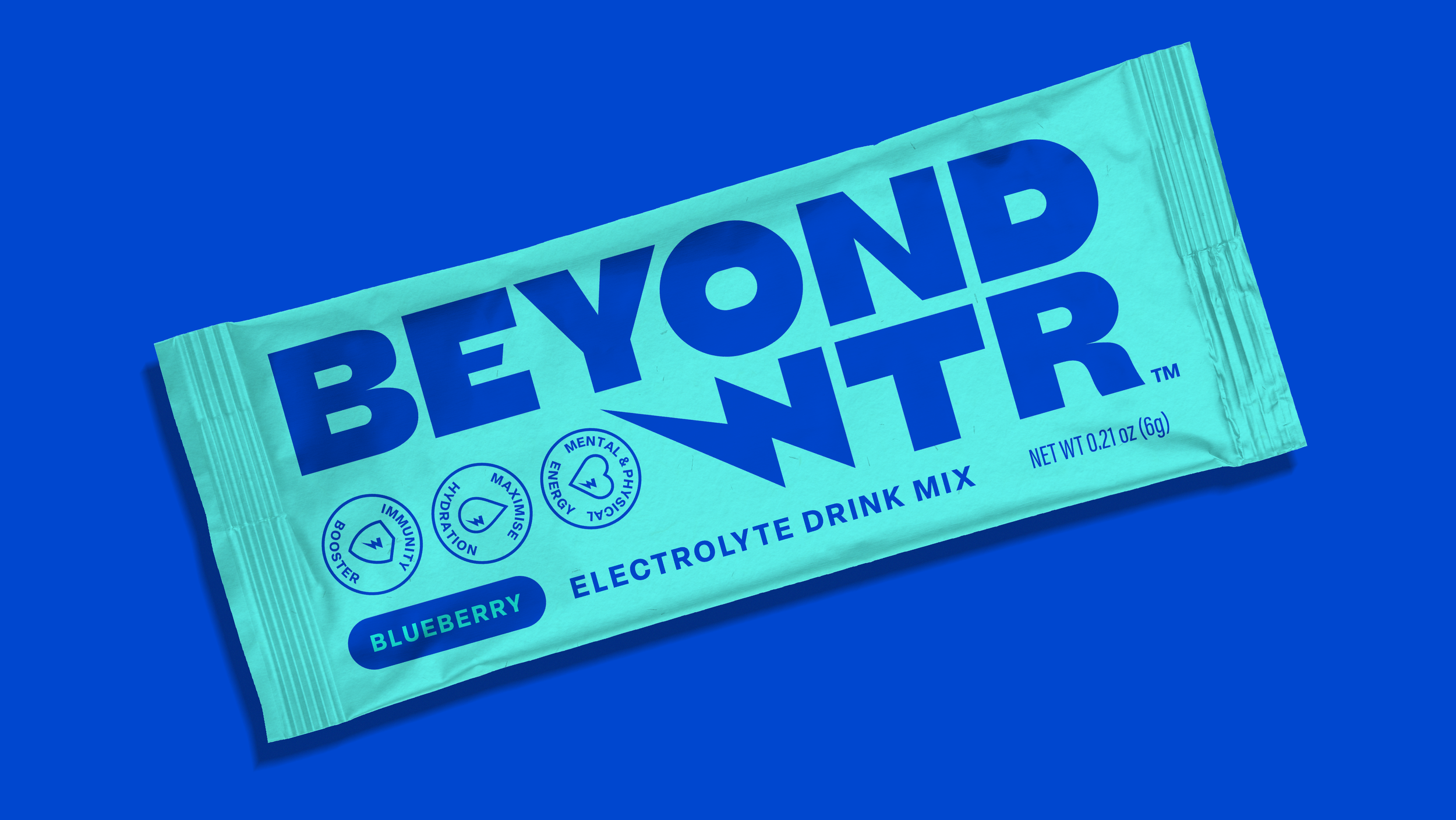 Create the brand packaging for a new-to-market electrolyte powder born out of the lifestyle & well-being world.